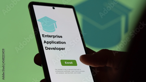 Enterprise Application Developer program. A student enrolls in courses to study, to learn a new skill and pass certification. Text in French