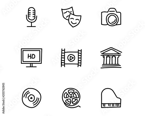 entertainment hand drawn icon set design illustration, hand drawn style design, designed web and app
