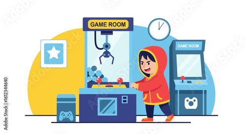 Enthusiastic Kid Plays At The Amusement Arcade Claw Machine Game