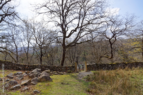Entrance to the tourist trail and information boards in the mountains of Snowdonia.