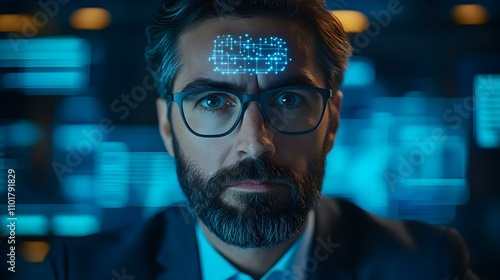 Entrepreneur Utilizing AI Driven HR Management Tools in Modern Office for Intelligent Employee Management