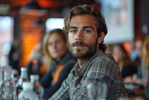 Entrepreneurs pitching ideas at restaurant table