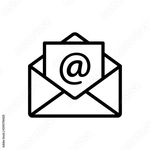Envelope email icons with at @ symbol in outline fill styles, representing email, messaging, communication, inbox, and contact in flat vector design