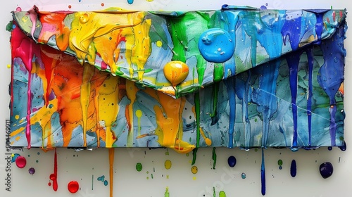 Envelope exploding in colorful paint - mail, contact, advertising, email. Bright background.