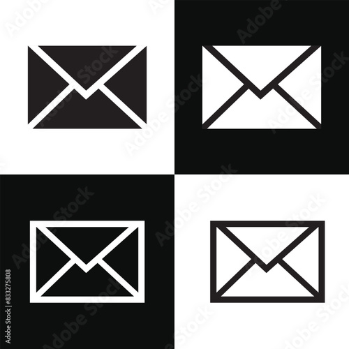 Envelope icon, email message icon - Mail icon button sign, notification new message icons buttons. isolated on white and black background. Vector illustration . EPS 10