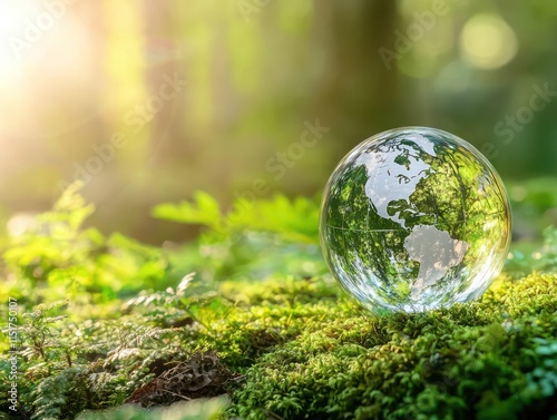 Environmental Conservation Concept Featuring a Glass Globe on Moss in a Forest