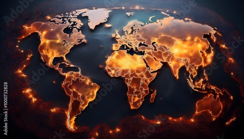 Environmental Impact Concept - Digital map of the world with tropical zones showing weather conditions.