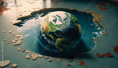 Environmental pollution: Earth submerged in a pool of garbage