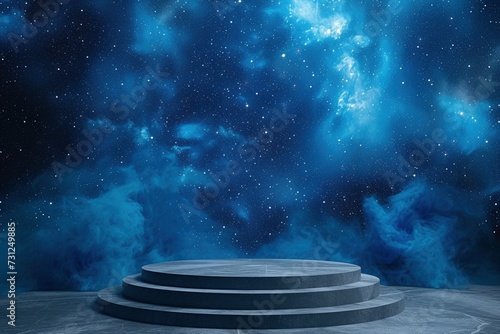 Envision a captivating podium set against the backdrop of a cosmic expanse, evoking the enchanting allure and mystique of the night sky, perfect for artistic or celestial-themed projects