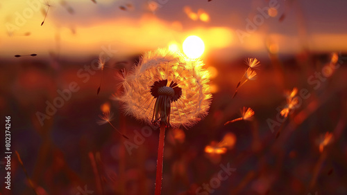 Ephemeral Beauty: Sunset Glow on Dandelion Fluff