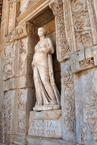 Ephesus, Turkey 2008 - Statue of Sophia in fron of the Library of Celsus