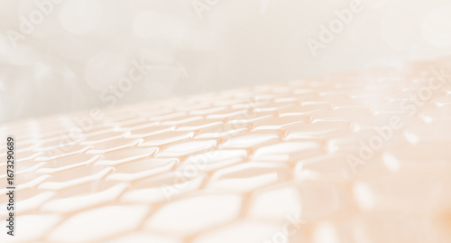 Epidermis layer with hexagon cell pattern 3d render. Healthy facial skin with even tone, smooth texture and elasticity. Beauty cosmetic skincare background. Structure of normal skin. 3D illustration