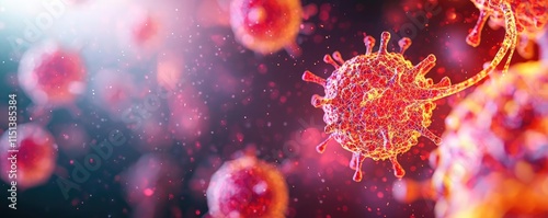Epilepsy disease concept. Colorful microscopic view of viruses showcasing their unique structure and properties.