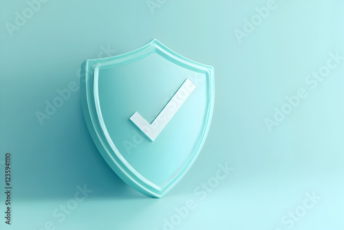 Escudo cian minimalista con marca de verificación blanca, representando seguridad verificada, autenticación y confianza en negocios digitales