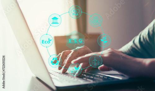 ESG (environmental, social and governance) concept, Business sustainable and ethical Network connection and develop green energy concept.