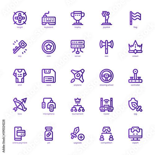 Esport Gaming Icon pack for your website design, logo, app, and user interface. Esport Gaming Icon basic line gradient design. Vector graphics illustration and editable stroke.