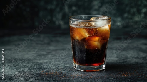 Espresso Tonic, cold drink with espresso and tonic in glass, isolated black grey background
