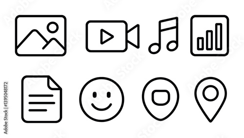 Essential media and location icons set for digital and print use – linear style
