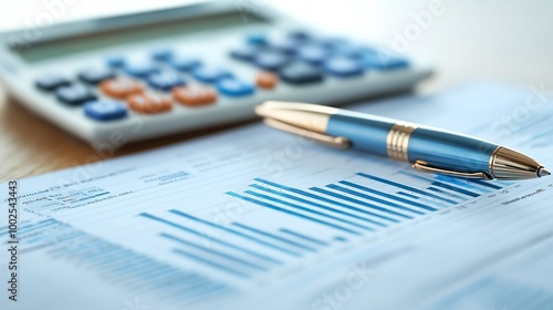 essential office tools for financial analysis: calculator, pen, and data sheet, supporting budgeting, investment analysis, and financial decision-making in business environments