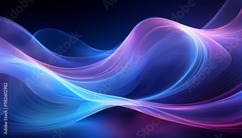 ethereal abstract design of flowing translucent blue and purple light waves creating a serene and dreamy look