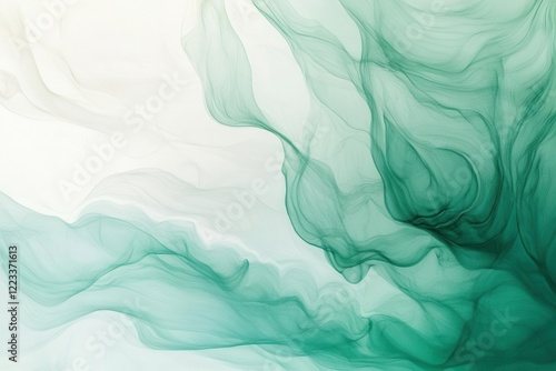 ethereal abstract painting with flowing organic forms, soft gradient transitions, mint green and ivory palette, contemporary minimalist style, textural brushwork
