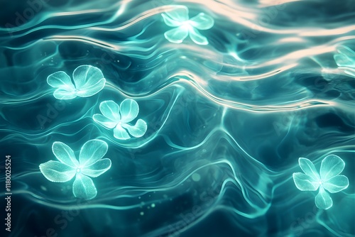 Ethereal Aquamarine Ripples Adorned With Luminescent Sand Dollar Icons
