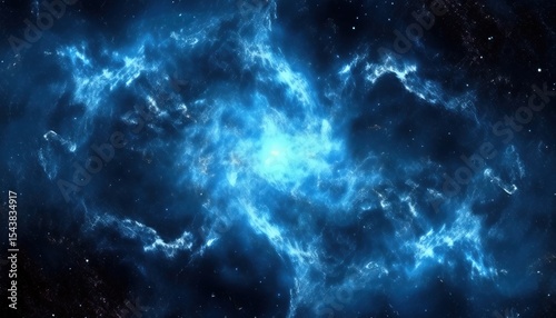 ethereal blue cosmic nebula explosion with glowing light core and electric gas clouds in deep space, perfect for sci-fi web design, print poster, or tech branding