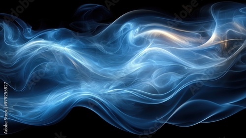 Ethereal blue smoke flowing gracefully against a dark background, creating a serene and captivating visual experience