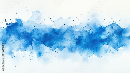 ethereal blue watercolor stain on textured white paper organic shapes varying opacity delicate splatters dreamy artistic composition