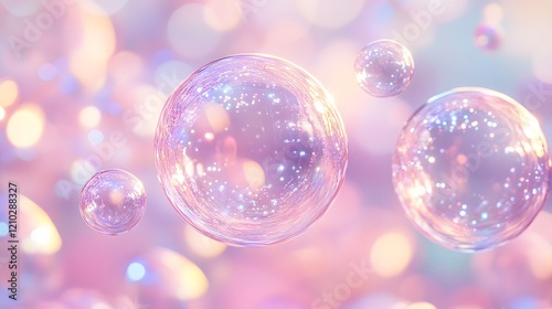Ethereal bubbles floating in a soft colorful atmosphere with shimmering highlights and a aesthetic The bubbles appear delicate iridescent and captivating