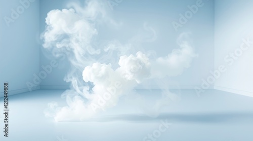 Ethereal Cloud Forms in a Minimalist Room: Serene Blue Mood