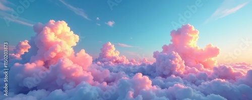 Ethereal clouds drift across a vibrant blue sky, with hues of orange and pink unfolding below , clouds, vivid