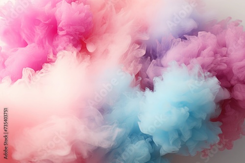 Ethereal clouds of pink and blue ink swirling in water create an abstract, dreamy background