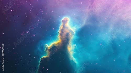 Ethereal Cosmic Nebula with Vibrant Colors and Stars in Deep Space