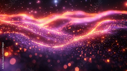 Ethereal Cosmic Waves Abstract Glittering Particle Flow in Deep Space.
