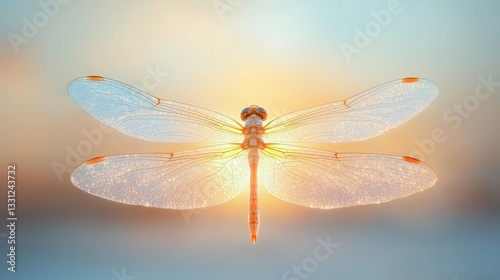 Ethereal Dragonfly Elegance Radiating Light on Soft Background with Delicate Wings Open Displayed