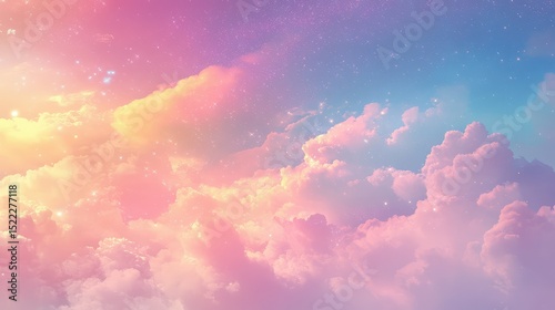 Ethereal Dreamy Clouds in Pastel Colors Under a Starry Sky with Soft Glow and Light Effects Creating a Tranquil and Serene Atmosphere for Imagery and Art