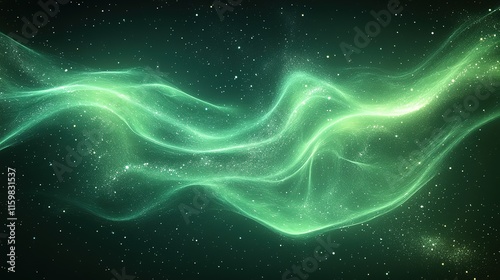 Ethereal green waves of light cosmic space abstract art digital environment wide view mystical concept