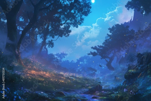 Ethereal moonlight forest scene ideal for creating dreamy and enchanting visuals