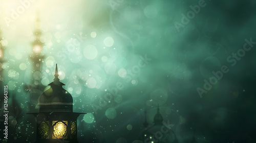 Ethereal night scene featuring a illuminated dome against a misty backdrop with soft bokeh lights