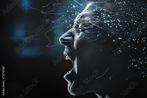 Ethereal profile of a human head with particle streams, evoking themes of mind, data, and networks.