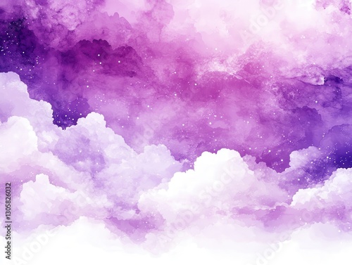 Ethereal Purple and White Clouds with Starry Sky in Watercolor Art Style for Dreamy Backgrounds and Creative Designs