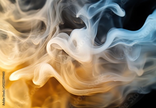 Ethereal Smoke Patterns on Black Background Creating Abstract Art with Vibrant Hues of Yellow, White, and Blue for Creative Projects and Design Applications