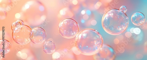 Ethereal Soap Bubbles Floating in Air Captivating Soft Pastel Abstract