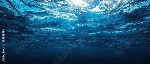 Ethereal Sunlight Filtering Through the Azure Depths Underwater Scene Capturing the Serene Beauty of the Ocean with Sunbeams and Rippling Water Surface