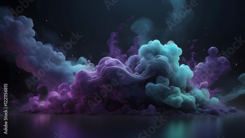 Ethereal swirls of teal and purple ink dance against a dark, starry backdrop, creating a mesmerizing cosmic nebula effect