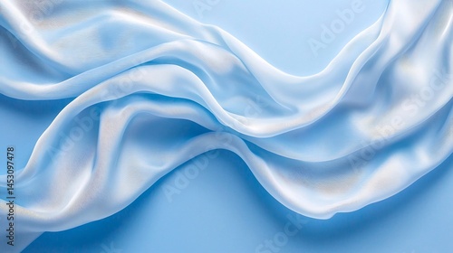 Ethereal texture of flowing silk like folds soft shimmering waves layered gracefully in a minimalistic pattern on a calming blue background