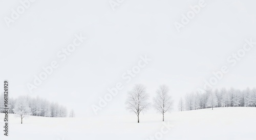 Ethereal Winter Stillness Two Birch Trees in a Vast White Landscape.