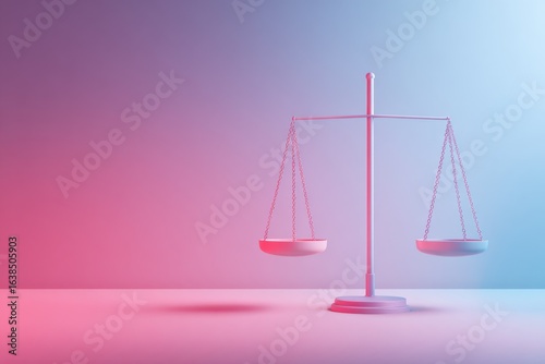 Ethical finance concept with balanced scale over soft abstract gradient.