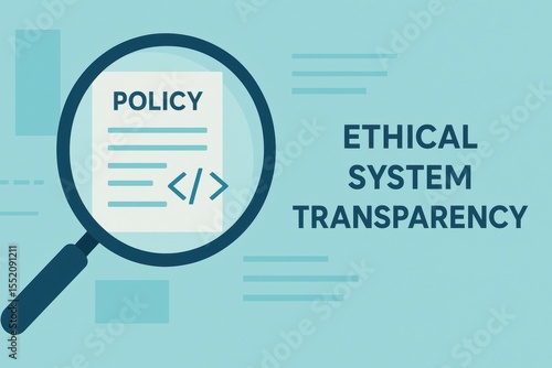 Ethical System Transparency in Policy Framework with Magnifying Glass and Document Illustration